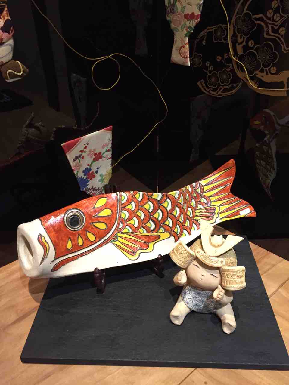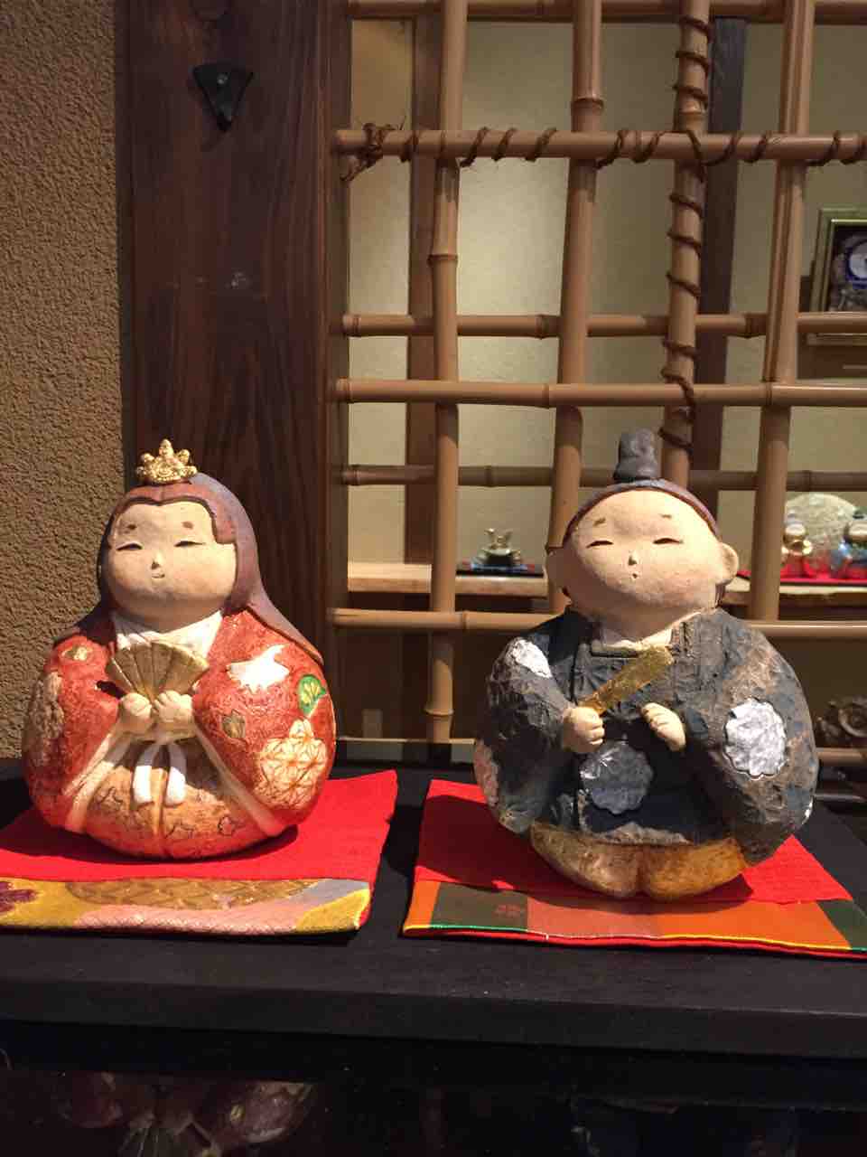 お雛様や五月人形と織部焼の器、などを