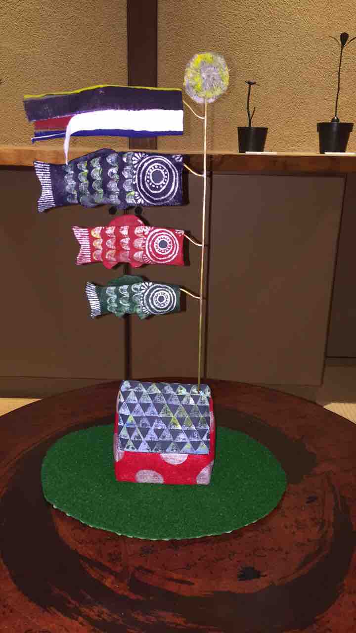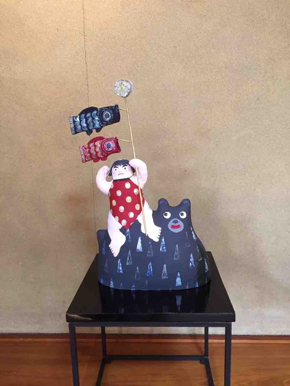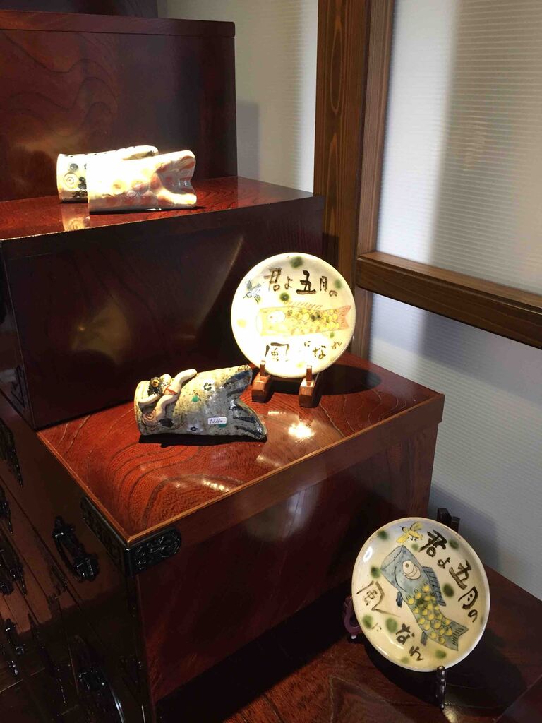 田中あつしさんの金太郎や藍染のタペストリー、色紙など節句も含め展示します