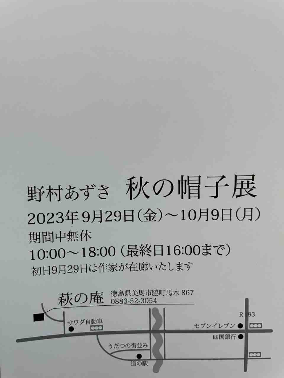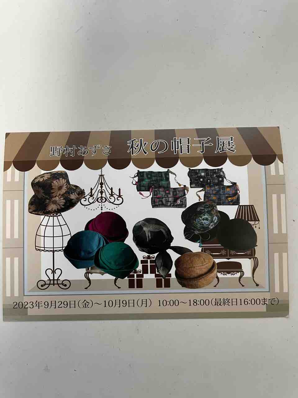 野村あずさ秋の帽子展が始まります。