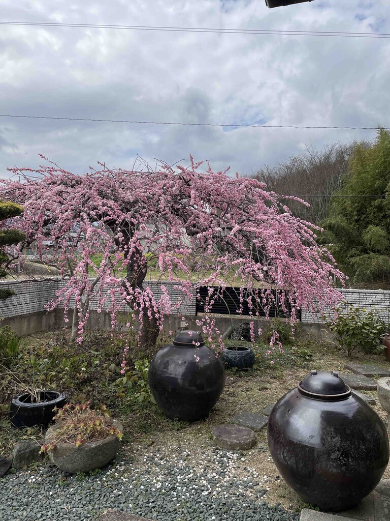 枝垂れ梅が満開❣️3/20(木曜日)は営業しています🈺